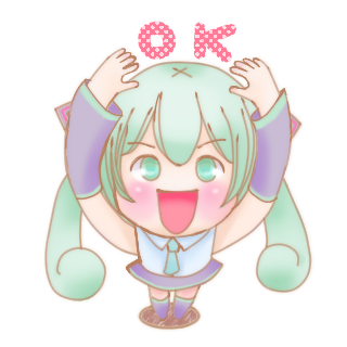 なんか…サイズ小さかった?これラインスタンプになったとき、ミクちゃんが巻物を咥えてますっていうの、見た人わかるのかなあ…?